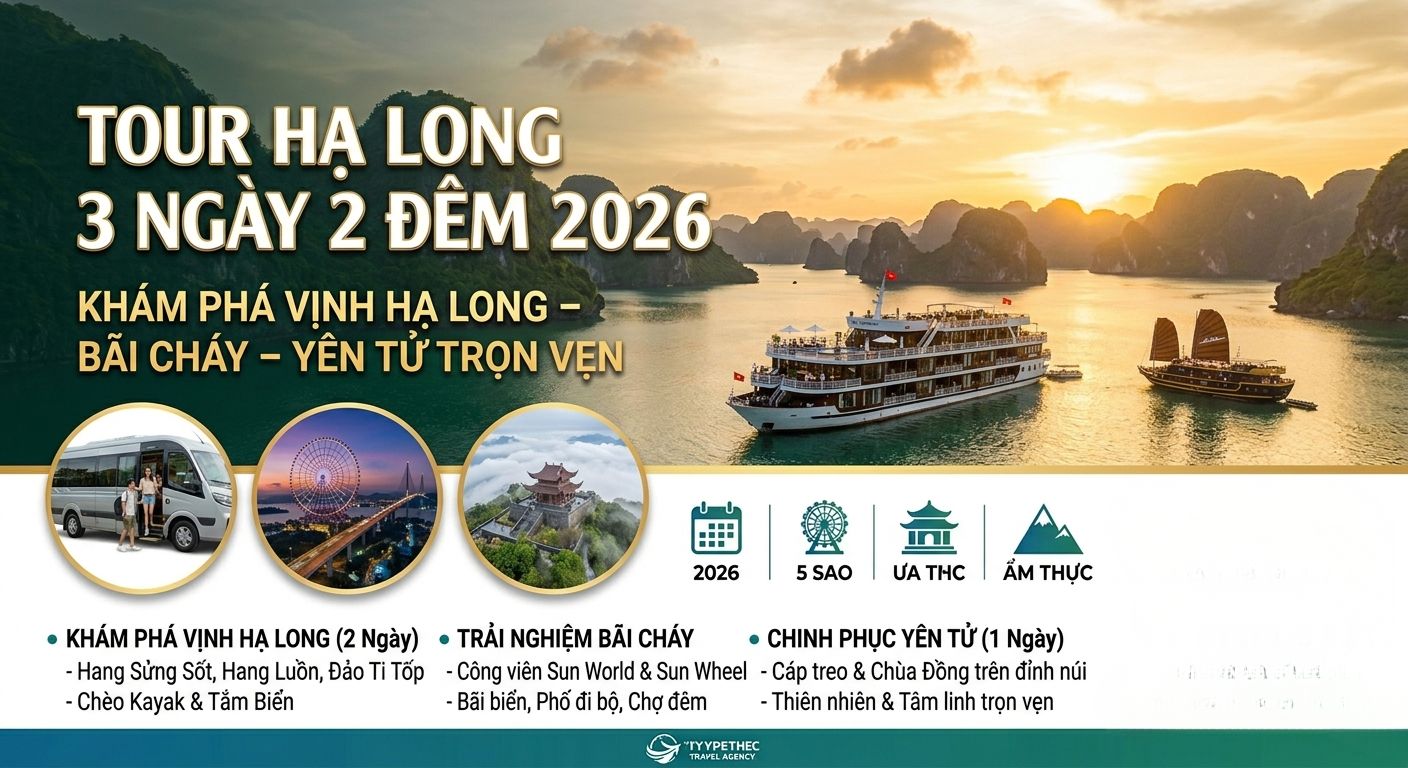 Hạ Long không chỉ có vịnh di sản. Để thực sự cảm nhận hết vẻ đẹp của vùng đất Quảng Ninh, du khách cần nhiều hơn một ngày. Chính vì thế, tour Hạ Long 3n2d (3 ngày 2 đêm) đang trở thành xu hướng được nhiều người lựa chọn trong mùa du lịch 2026. Hành trình kết hợp giữa kỳ quan thiên nhiên thế giới – Vịnh Hạ Long, nhịp sống sôi động của trung tâm Bãi Cháy và không gian linh thiêng của núi rừng Yên Tử hứa hẹn mang đến một kỳ nghỉ đa trải nghiệm.