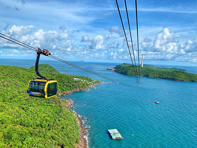 Trưa, dùng bữa hải sản tươi trên tàu. Chiều, ghé Bãi Sao – đẹp nhất châu Á với cát trắng nước trong, tắm biển, chơi thể thao hoặc thư giãn dưới dừa. Nếu mạo hiểm, thử cáp treo Hòn Thơm ngắm toàn cảnh đảo.