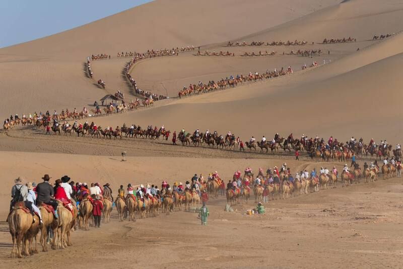 Quý khách thưởng thức bữa sáng tại khách sạn, sau đó đoàn lên xe di chuyển tới tham quan Minh Sa Sơn - Nguyệt Nha Tuyền (bao gồm xe điện + bọc giày). Quý khách có thể trải nghiệm cưỡi lạc đà tự phí 180 tệ/người.