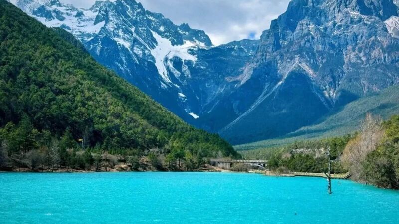 Nếu như Núi Tuyết Ngọc Long thu hút khách bởi nét đẹp hùng vĩ của ngọn núi tuyết trắng xóa quanh năm thì Lam Nguyệt Cốc quyến rũ du khách bởi làn nước xanh màu ngọc bích nằm dưới thung lũng, như điểm tô cho bức tranh phong cảnh thêm phần rực rỡ và quyến rũ hơn.